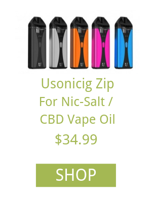 Included in the kit is the chance to pick out five different colors. Charging time with this device takes 1.5 hours and the kit also includes a user's manual, warranty card and USB cable. Usonicig zip kits are products that have an excellent liquid capacity and a large battery. With 1200 mAh of power, you can enjoy a large number of puffs without having to charge the device.