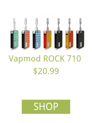 Vapmod Rock 710 produced their own original starter kit vaporizer and it has become one of the most popular for refillable oil vapes or wax atomizer vapes. Rock 710 comes with a series of different colorful device options. The products include the chance for a bonded leather design or poly carbonate. 15 second preheat start mode on this device ensures that it can be used quite discreetly and quickly recharged. The micro-USB cable ensures this device takes just 1.5 hours to charge to completion.
